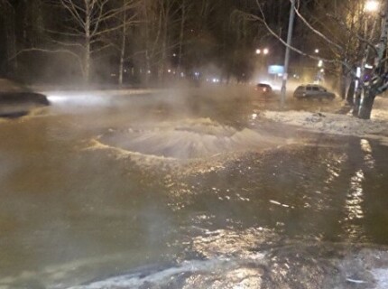 Улица Бардина в Екатеринбурге ушла под воду из-за коммунальной аварии