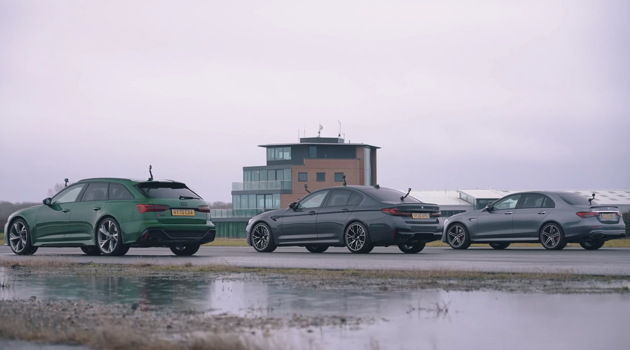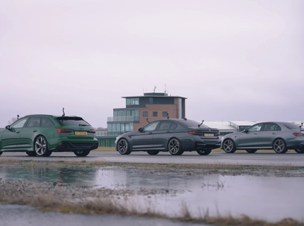Audi RS6, BMW M5 и Mercedes-AMG E63 — дрэг под дождем