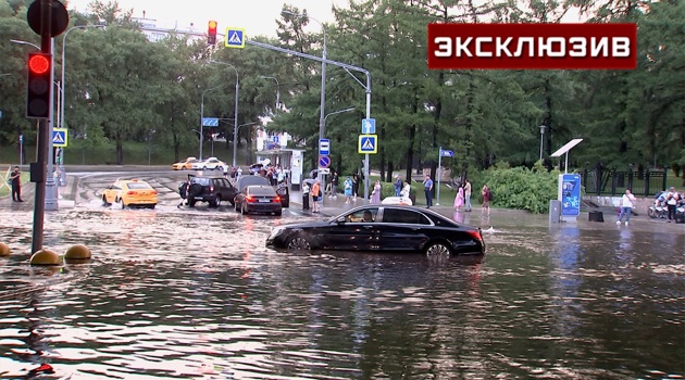 Купания в лужах и застрявшие авто: кадры последствий мощного ливня в Москве