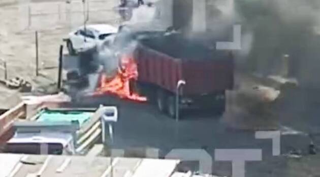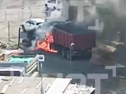 В Москве взорвавшийся грузовик КамАЗ попал на видео