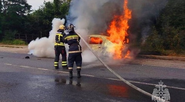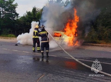 В Курском районе полностью сгорел автомобиль «Рено Логан»