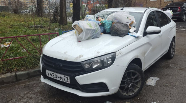 «Перформанс или инсталляция?»: туляки завалили мусором Lada Vesta за неправильную парковку