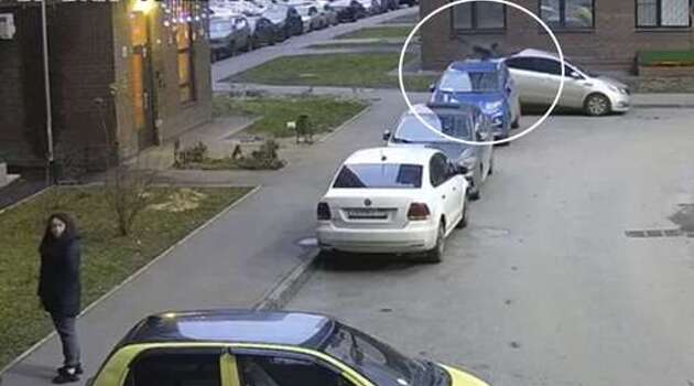 В Балашихе мужчина упал с высоты на автомобиль и попал на видео