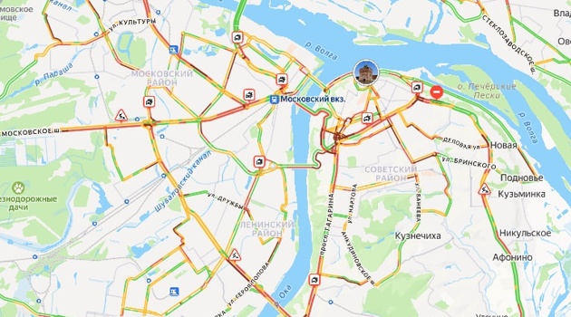 Снегопад снова спровоцировал жуткие пробки в Нижнем Новгороде