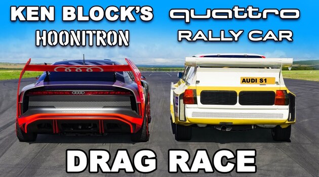 Видео: электрический Hoonitron свели в гонке с классической раллийной Audi S1