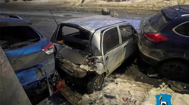 В Самаре молодой водитель Mercedes-Benz снес три припаркованные машины