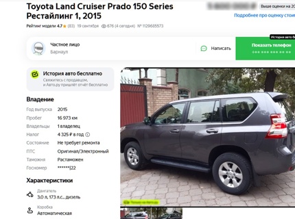 В РФ нашли почти новый Toyota LC Prado 150 2017 года