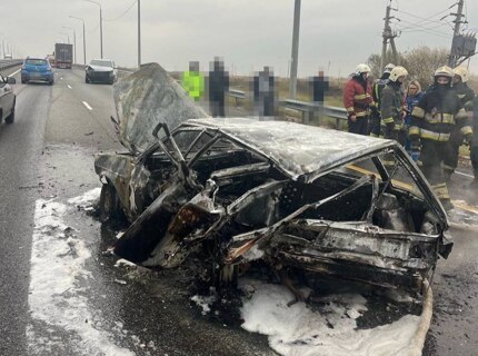 «Девятка» сгорела после ДТП на трассе М3 «Украина»