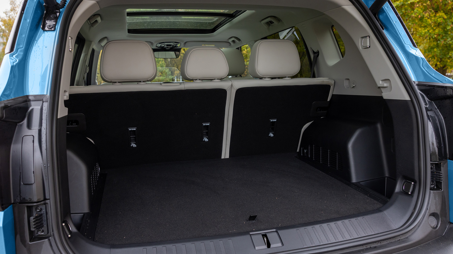 Вместимость багажника укороченного (по сравнению с Т2) кузова Т1 практически не уступает по этому параметру «старшему брату». Здесь 574 литра полезного объёма, что всего на шесть литров меньше, чем у Т2. Дверь багажного отсека, лишённая тяжеленной запаски, открывается при помощи электропривода вверх, а не вбок, как у Т2.