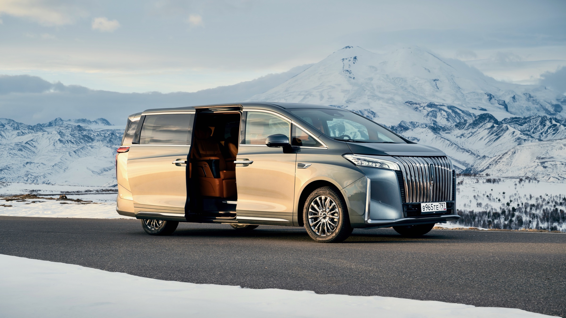 Технологичный минивэн от премиального суббренда Dongfeng предлагает покупателю на выбор: гибридную силовую установку мощностью 422 или 677 л.с. либо полностью электрическую начинку на 435 л.с. Все варианты — с полным приводом. Изюминка модели — система ночного видения, пневматическая подвеска, отделка салона алькантарой и «цифровая» передняя панель с тремя огромными экранами.