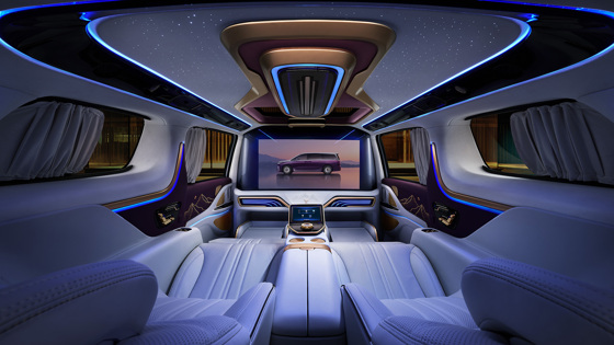 Полностью электрический минивэн от премиального суббренда Geely, поражающий сочетанием мощности (789 л.с.), роскоши и технологий. Запас хода — до 702 км. Доступен в 4-, 6- и 7-местных версиях. Особенность — эксклюзивный дизайн с хромированной решёткой радиатора, активная пневмоподвеска, охлаждаемый бар в центральной консоли, проекционный дисплей и первоклассные отделочные материалы.