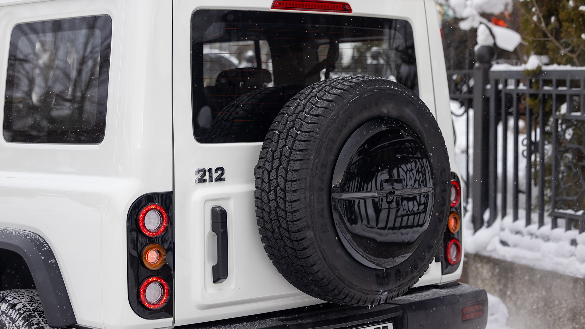 Задняя дверь 212-го — распашная. И очень тяжёлая из-за висящей на ней запаски. Собственно, по этой же причине дверь чуть-чуть провисает. Это хорошо заметно, если внимательно присмотреться. Да и закрывается она с излишним усилием — приходится преодолевать перекос, вызванный весом. Прямо как на «уазиках» с их провисающими со временем петлями!