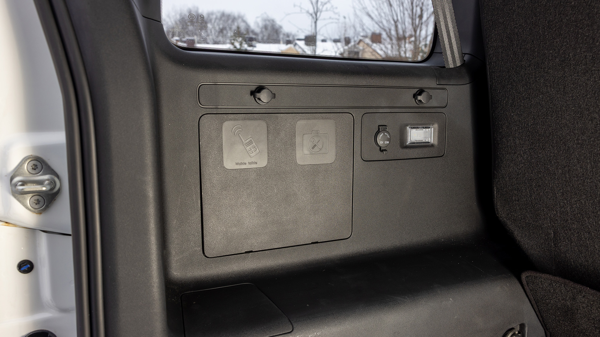 Объём багажника заявлен производителем на уровне 745 литров. Видимо, считали от пола до потолка — глубиной он не впечатляет. Кстати, намёки на военное прошлое есть и в багажнике: над левым задним крылом предусмотрена специальная ниша под установку радиостанции. А снаружи на пятой двери есть пластиковая заглушка — она прикрывает специальное место под установку антенны.