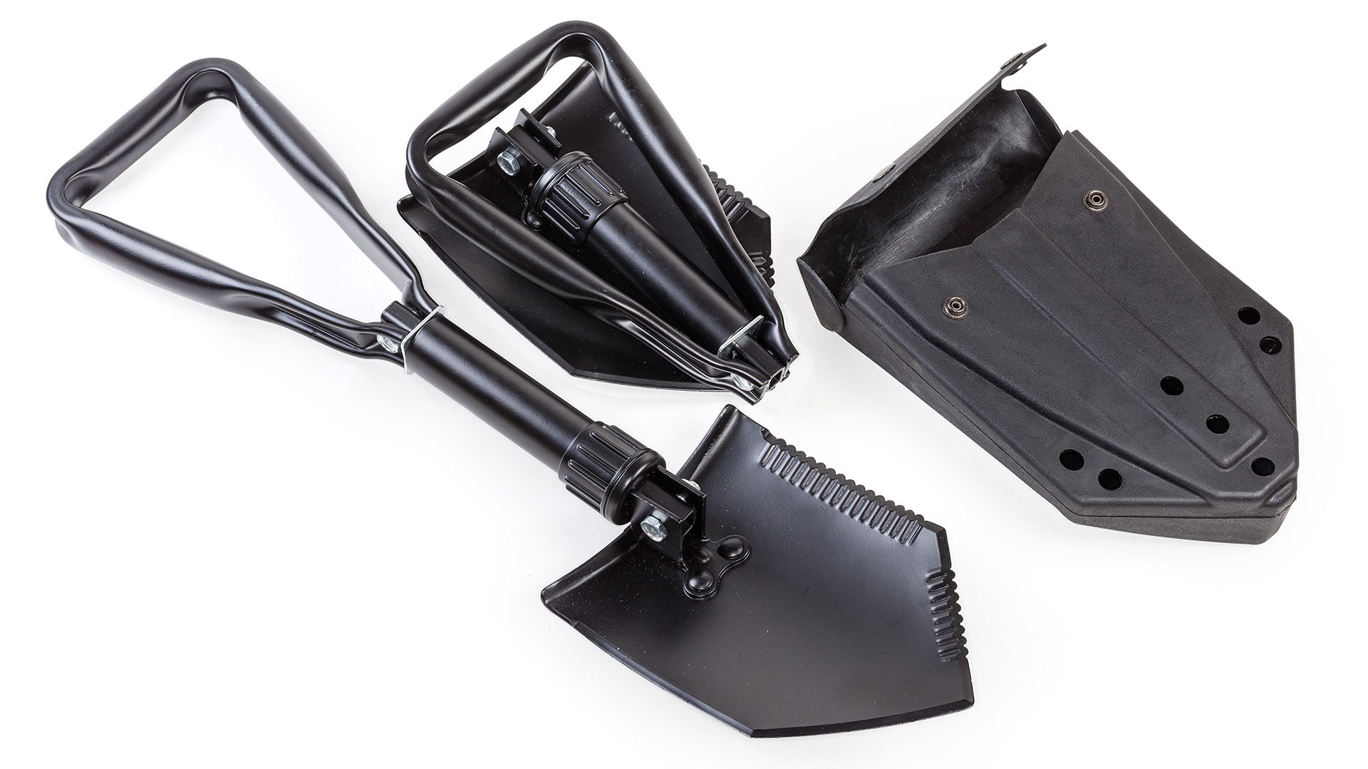 Верней не лопата, а лопатка — например, сапёрная или складная. В зимнее путешествие вполне можно взять компактную складную снеговую лопату, которая помещается в багажник. Сапёрная будет более универсальна: её можно использовать и в тёплое время года для грунта.