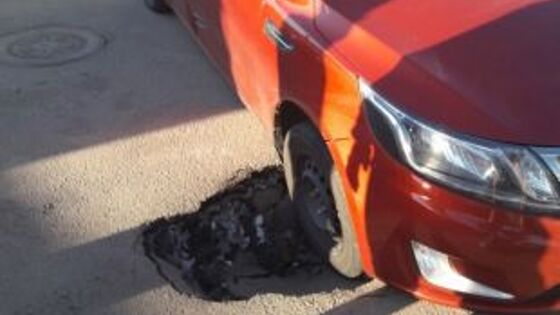 В Кудрово автомобиль чуть не провалился в образовавшуюся в асфальте яму