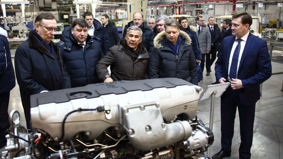 Автотехника КАМАЗа с элементами инновационных разработок была презентована на выставке, организованной в рамках расширенного заседания коллегии Министерства транспорта и дорожного хозяйства Республики Татарстан. В мероприятии, состоявшемся в IT-парке Набережных Челнов, приняли участие президент Татарстана Рустам Минниханов, министр транспорта России Максим Соколов, министр транспорта и дорожного хозяйства Республики Татарстан Ленар Сафин, заместитель руководителя Федерального дорожного агентства Андрей Костюк и другие. В ходе визита в Набережные Челны делегация посетила камазовское производство. В сопровождении генерального директора КАМАЗа Сергея Когогина гости побывали на заводе двигателей, где ознакомились с новой линией сборки двигателя Р6, осмотрели новый завод каркасов кабин для автомобилей поколения К5. Кроме того, им были продемонстрированы электробус КАМАЗ, а также первый автомобиль из серии КАМАЗ-54901, производство которых запланировано на 2019 год. На выставке, организованной в рамках заседания коллегии Минтранспорта и дорожного хозяйства РТ, КАМАЗ представил 16 моделей автотехники. Среди них – КАМАЗ-5490 в газодизельном исполнении и КАМАЗ-5490 NEO, самосвалы КАМАЗ-6520 «Люкс», КАМАЗ-65801, -65802, а также электробус КАМАЗ-6282, рестайлинговый низкопольный автобус НЕФАЗ-5299, вахтовый автобус на шасси КАМАЗ-43118 и другая техника. Автомобили из нового модельного ряда компании пользуются высоким спросом среди российских потребителей. Техника задействована в реализации масштабных государственных проектов и в силу высоких технических и потребительских характеристик эксплуатируется в различных географических и климатических условиях. Например, модель КАМАЗ-6520 «Люкс» оснащена новой комфортабельной кабиной на четырехточечной подвеске с полным набором опций и 400-сильным двигателем экологического класса «Евро-4». Грузовик отличается усиленной передней подвеской (максимальная нагрузка на переднюю ось – 9 тонн) и увеличенной до 22 тонн грузоподъемностью. Также в автомобиле – обогреваемая самосвальная платформа с современной гидравликой фирмы HYVA, доказавшей свою надежность.