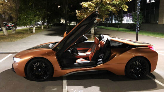 Въезд BMW i8 Roadster на корпоративную парковку – да на любую парковку, да даже появление в тягучей бесконечной пробке – вызывает провал во времени: все застывают, пытаясь понять, что за чудо явилось перед их глазами. И тут же фанаты марки, если могут, начинают заваливать тест-драйвера вопросами, делиться восхищением или скепсисом и выносить вердикт: нет, это не настоящая BMW. И правда не настоящая. Хотя какая BMW «настоящая»? Баварская марка, как, пожалуй, ни одна другая автомобильная компания в мире, славится тем, что умеет «переизобретать» себя. Начав после Второй мировой войны с выпуска мини-каров по итальянской лицензии, в 1956 г. BMW стала производить очень красивый родстер 507, который, однако, в продажах провалился, так как был слишком дорог для тогдашнего имиджа BMW. Но уже два десятилетия спустя марка утвердилась в премиуме. Все последующие родстеры BMW, в том числе и Z8, так или иначе апеллировали к BMW 507, но остальная продукция компании была всегда солидная и серьезная – даже в эпоху, когда за дизайн BMW отвечал Кристофер Бэнгл. И вот появилась BMW i8 – остроумный ответ суперкарам иных марок, интересный опыт сверхсовременного дизайна и сверхсовременных технологий. Естественно, сверхсовременный автомобиль должен иметь электрическую силовую установку, и BMW i8 – это гибрид. Но купе, выпускающееся с 2014 г., и тем более родстер, появившийся в 2018 г., настолько неутилитарны, что не вызывают никакого желания узнать, как именно в них все устроено технически (тем более что капот заблокирован и может быть открыт только авторизованным дилером). Зато всегда есть желание красоваться в этом родстере и мчать. Но для начала предстоит привыкнуть к тому, что войти в BMW i8 непросто. Дело не в том, что двери открываются вверх «крыльями бабочки», – это просто занятно; дело в том, что сиденье расположено весьма близко к земле, а порог – относительно высоко, да еще он и широкий. Так что приходится закидывать тело внутрь – а вылезая, совершать незначительное, но все же спортивное упражнение. Одна из добровольных помощниц тест-драйвера попробовала залезть в i8 в узкой и короткой юбке – и это вообще не получилось: перенести ногу не давала узость юбки (или ширина порога), а попытка упасть на сиденье задней частью, чтобы затем перенести внутрь обе ноги сразу, закончилась болезненным соприкосновением головы испытательницы с торчавшей вверх дверью. Но вот после того, как водитель и пассажир залезли (или упали) внутрь i8 и захлопнули «крылья бабочки» (довольно тугие и без электронного помощника), наступает-таки момент именно автомобильного кайфа, которого ожидаешь от весьма дорогого автомобиля, – особенно понятного тем автолюбителям, кто хорошо знаком с BMW. Привычный четкий руль, замечательная система iDrive, характерные ощущения от педалей и джойстика, которым управляется автоматическая коробка передач. Разве что первые метры движения, которые i8 почти всегда проезжает на электрической тяге, т. е. бесшумно, несколько контрастируют с обычными вечатлениями от начала вождения BMW. Ну а когда подключается специально созданный рев двигателя и машина будто подначивает водителя: быстрей, быстрей, чего еще ждать! – перелезание через порог забывается совершенно. Но и в движении BMW i8 ведет себя не совсем так, как обычная BMW, – скорее это максимально заряженная Mini, может, только не такая зверски же