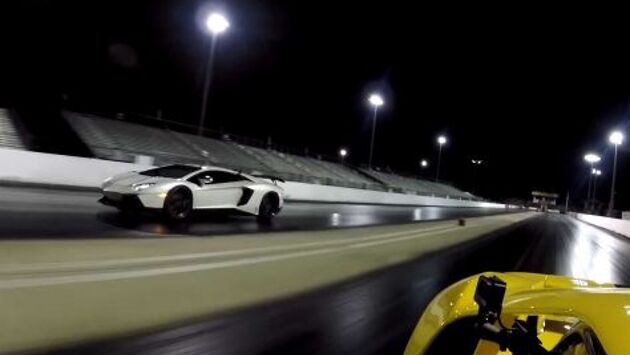 Ford GT и Lamborghini Aventador устроили дрэг. Оба автомобиля практически схожи по своим характеристикам. Тем интереснее их противостояние на классической гоночной дистанции. Видео уже доступно для просмотра. Lamborghini Aventador имеет в своем активе двигатель V12 на 6,5 литра и мощностью в 700 лошадиных сил. Благодаря трансмиссии усилия передаются на все 4 колеса. Мотор у Ford GT имеет только 3,5 литра. Однако особая конструкция силовой установки выдает потенциал в 647 «лошадей». Все усилия передаются коробкой передач на задний привод. Есть и очевидное преимущество у GT - это масса. Автомобиль легче Aventador почти на 140 килограмм. Перед дуэлью Ford GT сделал несколько пробных заездов. Лучший результат составил 10,85 секунды при скорости 131 миля в час. На ролике заметно, что гонщики стартовали с разворота. Прямой рывок был бы интереснее.