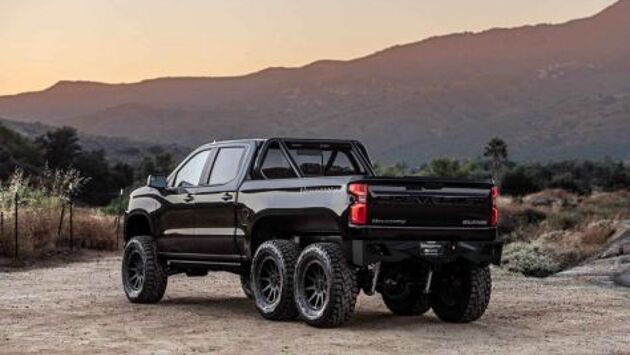Ателье автомобильного тюнинга Hennessey, более известное по доводке маслокаров, представило очередную свою разработку. На этот раз внимание дизайнеров и инженеров привлек пикап Chevrolet Silverado. Машину доработали за счет установки сзади двух осей. В мире такая конструкция не является новой. На базе Toyota Hilux в России производится модификация для условий Арктики. Само ателье еще в 2017 году уже выпускало пикап на трех осях - VelociRaptor. Нынешняя разработка получила собственное имя. Для постройки Goliath с колесной формулой 6×6 потребовалось переработать ходовую часть. Использовано шасси от полноценного грузовика. Клиренс автомобиля увеличен на 200 мм. В подвеске применены пружины увеличенного сечения и новые стабилизаторы. Выделяются внедорожные шины на дисках R20. Базовым мотором является V8 с объемом 6,2 л. (450 л.с.). В такой комплектации тюнинг-ателье даже предлагает гарантию на пикап на 3 года (или 58 тыс.км). По индивидуальному заказу доступна версия машины мощностью 808 л.с. В этом случае разогнать до «сотни» Goliath удастся за 4 секунды. Базовая версия пикапа доступна от 375 тысяч долларов.