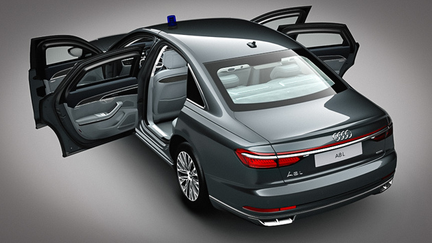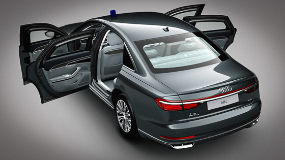 Удлиненный флагманский седан получил круговую защиту класса VR9, которая позволяет автомобилю выдержать обстрел из автомата, в том числе пулями калибра 7,62 со стальным сердечником. Многослойные стекла со слоем поликарбоната усилены в соответствии со стандартом VR10 и могут защитить от пуль из снайперской винтовки Драгунова, а уровень взрывозащиты соответствует стандарту ERV 2010 – для него не страшен взрыв 15 кг тротила. Дополнительную защиту от подрывов обеспечивает антимагнитная противоосколочная защита порогов. Для сравнения, показанный в прошлом году BMW X5 Protection обеспечивает защиту только уровня VR6. Бронированный длиннобазный Audi A8 способен продолжать движение на скорости 80 км/ч на расстояние до 80 км даже со спущенными шинами. Также флагман оснастили аварийной системе эвакуации, позволяющей водителю и пассажирам безопасно покинуть автомобиль. Вес бронированного A8 L удалось заметно снизить благодаря использованию в конструкции алюминия и арамидного волокна. Минимальная снаряженная масса "броневика" составляет 3,95 т. В салоне установлен блок управления аварийными системами: подачи воздуха, экстренного открывания дверей и системой внешнего пожаротушения. Последняя активируется автоматически при значительном повышении температуры. Также имеется ассистент управления аварийными функциями, позволяющий водителю контролировать их работу. Представительский седан приводится в движение 4-литровым бензиновым битурбомотором V8 TFSI мощностью 571 л.с. и 800 Нм крутящего момента, который работает в тандеме с восьмиступенчатым "автоматом" и системой полного привода quattro. Максимальная скорость составляет 210 км/ч. Стандартный Audi A8 доступен в России с бензиновыми и дизельными моторами мощностью от 249 до 460 л.с. Стоимость варьируется от 6,55 млн до 8,95 млн руб.