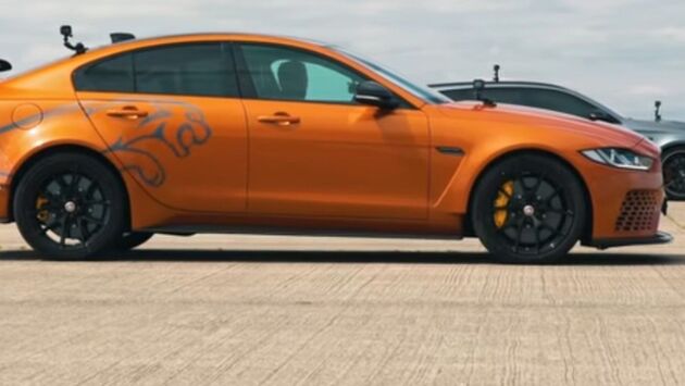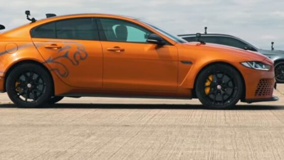 В Великобритании попробовали сравнить два, совершенно различных транспортных средства, Jaguar XE SV Project 8 и универсал Mercedes-AMG E 63 S. Несмотря на многие различия, у этих автомобилей есть достаточно схожие характеристики. Так, Jaguar оснащается компрессионным мотором объемом 5,0 литров и производительностью 600 лошадиных сил. Силовая установка работает в тандеме с восьмиступенчатой автоматической коробкой передач. Для того чтобы выйти на скоростной режим в 100 км/час автомобилю требуется 3,5 секунды. Седан оборудован системой полного привода. Топовая модель Mercedes-AMG E 63 S в кузове универсал имеет в своем арсенале силовую установку с двумя турбинами объемом 4,0 литра. Мощность двигателя составляет 612 лошадиных сил. На скоростной показатель 100 км/час машина выходит также за 3,5 секунды. при этом машина тяжелее своего конкурента. Соревнование между двумя моделями заключалось в преодолении дистанции в четверть мили, а также в ускорении с показателя 80 км/час. Кроме этого проверили эффективность тормозных систем транспортных средств. О результатах этого интересного противостояния можно узнать, посмотрев видео.