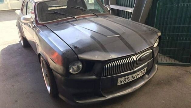 Сбоку, в полном соответствии с законами жанра, были заметно расширены колесные арки в которые почти заподлицо еле убрались большие современные колеса. Задняя дверь заварена, а центральная стойка перенесена назад примерно на те же 15-20 см, превращая «волговский» кузов из классического седана в двухдверное спорт-купе.
