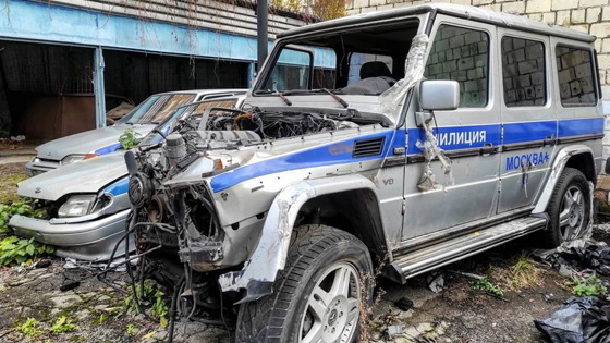 Поскольку Mercedes-Benz G-Class не переклеивали в цветографическую схему полиции, можно сделать вывод, что внедорожник разбили и списали до реформы МВД в конце 2000-х. По какой-то причине автомобиль до сих пор не утилизировали.
