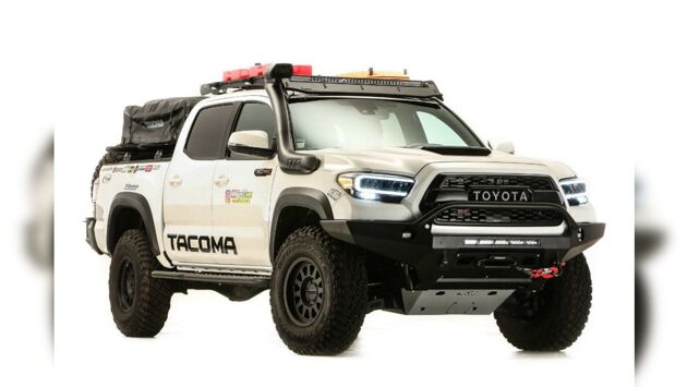 Как оказалось, автомобилистам действительно будет на что посмотреть. Тюнеры представили поклонникам американской марки пикап Toyota Tacoma TRD, который основательно подготовили к активному отдыху на природе. В экстерьере добавили лебедку и бампер из алюминия, дополнительную оптику, чтобы освещать дорогу в темноте, багажник на крыше. Грузы можно перевозить и на дополнительных бортах грузовой платформы, а в багажнике среди инструментов владельцы найдут канистры Rotopax, насосы PowerTank PT10 и даже палатки Yakima SkyRise.