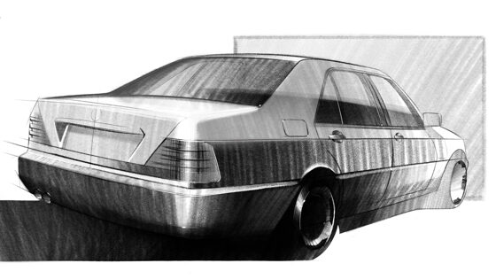 **1991 год. Mercedes-Benz S-Class W140** Здесь и далее комментарии Антона Изотова, автора эскизов. «Первый пошёл. Первый, по мнению многих, на всё открывающееся десятилетие. Первый, являющийся до сих пор мечтой многих. И обязательны шесть горизонтальных брусьев на решётке, а не три. Или вообще бешеная версия 7.3 AMG и 305 км/ч. Но это будет позже, а пока Mercedes-Benz S-Klasse W140. 1991, тридцать лет кряду стоящий как квартира.»