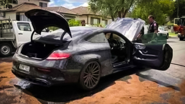 Мужчина пытался пожечь покрышки, а в итоге сжёг свой Mercedes-AMG