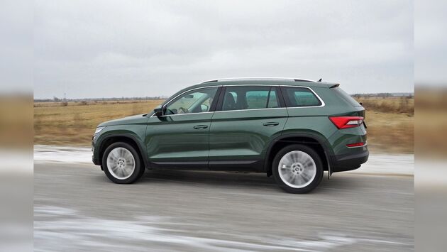Skoda Kodiaq. Данная модель выпускается с 2016 года и пользуется большой популярностью у семейных людей. И этому есть свое объяснение. Автомобиль строится на платформе MQB, которая является основой и для Tiguan. Из-за увеличенной колесной базы автомобиль попадает в другой сегмент. Длина кузова составляет 4.7 метра. Объем багажного отделения достигает 635 литров, при необходимости его можно увеличить до 1980. На рынке России модель предлагается с бензиновыми моторами с турбинами на 1.4 и 2 литра. Мощность - 150 и 180 л.с. В паре работает 7-ступенчатый робот DSG.