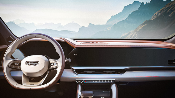 Компания Geely рассекретила интерьер кроссовера с индексом KX11. Новинка станет самым крупным автомобилем, построенным на модульной платформе Volvo CMA (Compact Modular Architecture), и получит футуристичное оформление передней панели.