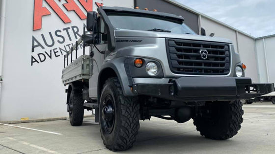 Впервые отечественные машины «ГАЗ» добрались до берегов Австралии. Накануне на местном авторынке объявили старт продаж вездехода с именем «Садко Next», а точнее GAZ TrackMaster 4x4. Разработчики предложат австралийцам праворульную версию авто. По данным портала Drom.ru, дистрибьюторской компанией по продаже вездеходов «ГАЗ» выбрали фирму AAV из Брисбена. Австралийская версия повторяет ту, что предлагается на родине. В движение авто приводит 4,4-литровый турбированный дизельный агрегат ЯМЗ-534 с объемом на 4,4 литра, выжимающий 150 лошадиных сил и 490 Нм. Эта установка соответствует экоклассу «Евро-5». В паре трудится «механика» на 5 ступеней и раздаточная коробка с жестким подключением переднего моста, понижающей передачей. За всепроходимость отвечают повышенный до 315 мм клиренс и опция подкачки шин. «Раздаткой» можно управлять благодаря кнопкам на приборной панели. В стартовом исполнении есть антиблокировочная система тормозов, кондиционер, шноркель, «мультимедийка», электронные стеклоподъемники и адаптивный круиз-контроль. В дополнение спецификация для Австралии получила еще один бак для бензина с объемом на 180 литров и защитный козырек от палящего солнца. Платформа для перевозки груза вышла в длину на 3400 мм. Ширина равна 2715 мм. Для другого континента модель укомплектована военной вариацией оптики. Фары получили круглую форму, напоминающие элементы машин из СССР. Напомним, что серийная версия «Садко Next» производится в Нижнем Новгороде с позапрошлого года. Капотная кабина досталась в наследство от родственного клана «ГАЗон Next». Большинство деталей из стали элементов подсмотрены у «ГАЗельи Next». Австралийские водители будут покупать российский вездеход от 5,2 млн рублей при переводе на актуальный курс валюты. У нас этот автомобиль продается на 2 млн дешевле. Австралийский авторынок получит версию модели с 7-ю местами с 2-рядной и 3-дверной кабиной. Читайте также о том, что ГАЗ вывел на рынок среднетоннажную грузовую модель «Валдай NEXT».