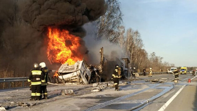 На 14-м километре дублера Сибирского тракта под Екатеринбургом столкнулись три грузовика, после чего они загорелись. Об этом пишет РИА "Новости" со ссылкой на ГУ МЧС по Свердловской области. Об аварии стало известно в 18.35 (16.35 мск). "По прибытию пожарных подразделений обнаружено, что при ДТП трех грузовых автомобилей произошло последующее возгорание фур. Одна из фур перевозила опасный груз - алюминиевую пудру. Существовала угроза взрыва", - говорится в сообщении. Отмечается, что в 19.02 (17.02 мск) с расстояния в 100 метров потушили фуру с пудрой. После этого гореть продолжили фура и молоковоз на площади в 50 квадратных метров. Огонь локализовали в 19.30 (17.30 мск). В настоящий момент восемь единиц техники и 23 человека работают на месте. Взрыв удалось предотвратить. Ранее в Екатеринбурге автомобиль Porshe въехал в здание гаража на территории исправительной колонии N2. Отмечается, что автомобиль повредил декоративное ограждение гаража.