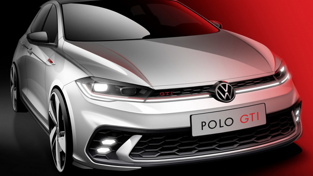 Обновленный Volkswagen Polo GTI будет похож на «старший» Golf GTI крупноячеистой сеткой переднего бампера с встроенными противотуманными фарам и светодиодной лентой дневных ходовых огней во всю ширину кузова.