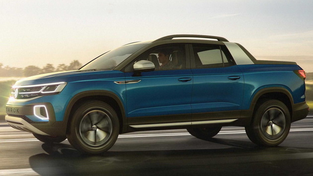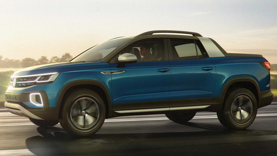 Проект легкого пикапа на платформе MQB фирма Volkswagen вынашивала с 2018 года. Концептуальный грузовичок Tarok поучаствовал в двух выставках в Южной и Северной Америках, но в итоге от необычной модели решили отказаться.