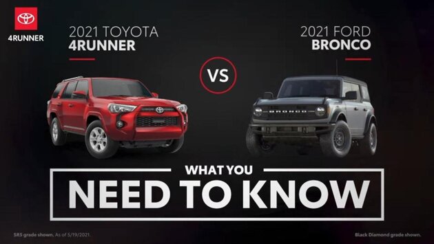 Toyota сравнила свой внедорожник 4Runner 2021 года с моделью Ford Bronco