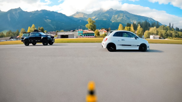 Блогеры провели две гонки. В обоих заездах X-Class на старте мгновенно отрывался от соперника. Казалось, что у миниатюрного Abarth нет ни единого шанса. Однако на дистанции хэтчбеку удавалось не просто догнать огромный пикап, но и дважды опередить его на финише.