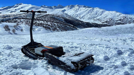 Электросноуборд ELIQ — это доска с гусеницей, которая приводится в движение мощным электрическим мотором. Повороты осуществляются наклоном тела.