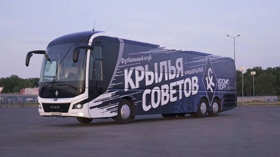 Недавно ФК "Динамо" (Москва) получил новый клубный автобус MAN Neoplan Tourliner LP22, а теперь подобной моделью обзавелись и "Крылья Советов". MAN Lion Scoach LR08 отвечает всем нормам безопасности и комфорта.
