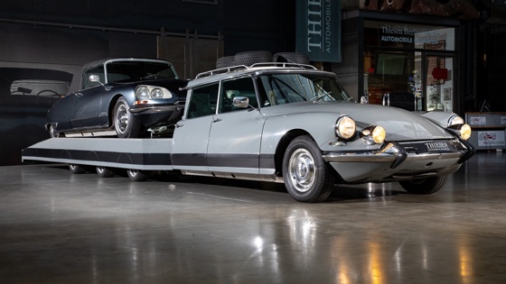 Немецкий дилер Thiesen выставил на продажу уникальный парный комплект из четырехосного транспортера Citroen DS Tissier и отреставрированного кабриолета DS с редким жестким верхом. Цену автомобилей готовы раскрыть только по запросу, однако известно, что оба «Ситроена» имеют доступ на обычные дороги и зарегистрированы как классические автомобили. По немецким законам регистрационные знаки таких машин заканчиваются литерой «Н».
