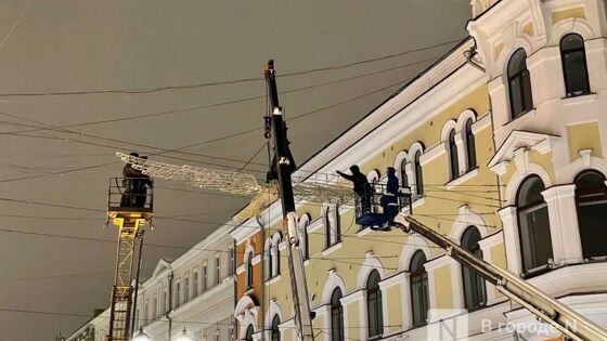 Монтаж новогодней иллюминации ведется на Большой Покровской в Нижнем Новгороде. Об этом сообщает корреспондент ИА «В городе N».