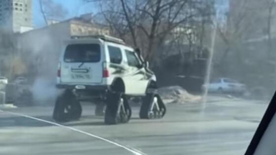 В субботу, 25 декабря, житель Владивостока опубликовал видеозапись с участием автомобиля. Интернет-пользователей сразу привлекло транспортное средство, которое передвигается по всему городу на гусеницах, сообщает PRIMPRESS со ссылкой на @vdk.nadzor.