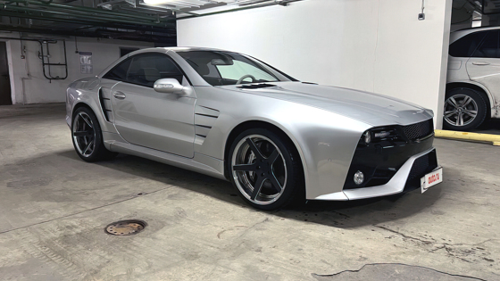 Mercedes-Benz SL 55 AMG доставили в Россию из Германии в 2002 году. В ходе модификаций отечественные инженеры полностью изменили внешний вид родстера, установив на автомобиль новые бамперы, расширенные крылья, а также другие фары и фонари. Кроме того, машину обули в кованные колёсные диски Rennen с низкопрофильный резиной. Интерьер родстера, выполненный из черно-белой кожи, остался без изменений.