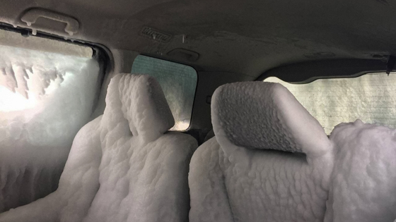 Помимо кузова, морская вода попала внутрь машины, в результате чего толстая ледяная корка полностью покрыла салон. Восстановить автомобиль до товарного вида практически невозможно, поэтому минивэн, скорее всего, отправят на запчасти.