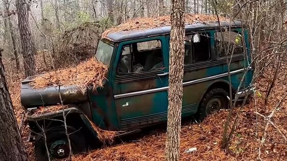 Экземпляр, про который пойдёт речь в этой статье, был изготовлен в 1961 году и простоял в лесу более 30 лет. Судя по всему, двигатель заводили ранее в 2021 году, но своим ходом автомобиль не передвигался с начала 1990-х годов. Тем удивительнее, что ребятам из RevStoration удалось вернуть его к жизни и даже проехаться по дорогам.