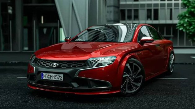 В модифицированном автомобиле явно просматриваются узнаваемые черты Lada Vesta. Но обновленная версия гораздо крупнее в размерах: корпус здесь длиннее и шире. На машину поставили большие колеса, как и подобает солидной модели.