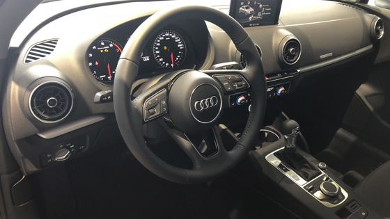 У Audi A3 есть спортивная и базовая версия. Для теста нам досталась S-Line со спортивными сиденьями – водительское кресло имеет боковые поддержки, электрорегулировки и выдвигающуюся подушку. Салон ощущается очень просторным, благодаря регулировкам в нем комфортно нашему высокому водителю.