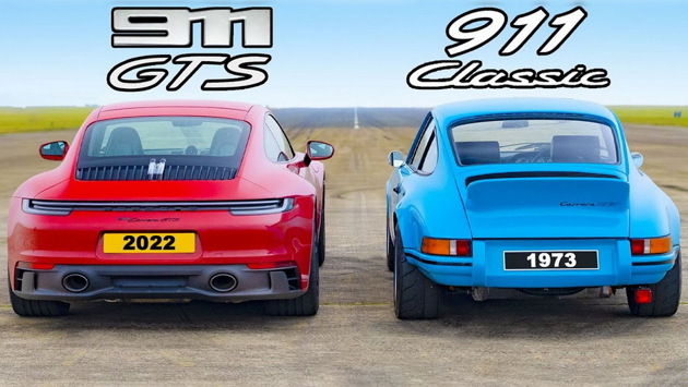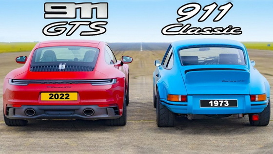 Британский YouTube-канал carwow устроил дрэг-гонку между новым Porsche 911 Carrera GTS (992) и классическим Porsche 911 Carrera RS с мотором от базовой Tesla Model S. Двухдверки посоревновались на прямой аэродрома; дуэль включала в себя заезды с места на четверть мили в разных конфигурациях, параллельные старты с хода с 30 миль в час (50 км/ч) на полмили, а финальным испытанием была оценка эффективности тормозов со 100 миль в час (161 км/ч).