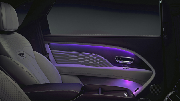 Кроме этого, интерьер новинки украсят подсветкой Diamond Illumination в обитых кожей дверных картах. В каждую из дверей встроены светодиоды (по 12 в передних дверях и по 22 в задних), которые излучают свет через миллиметровые отверстия в перфорированных ромбах.
